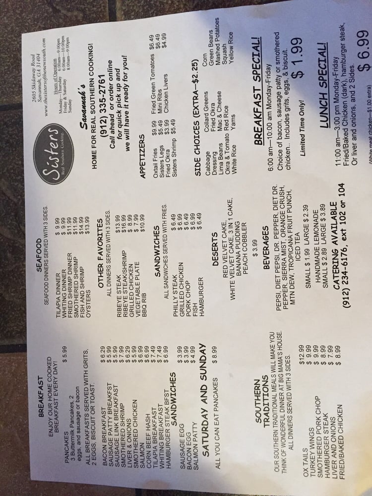 Located in Savannah, Georgia, Sisters of the offers a taste of authentic Southern, soul food, and seafood cuisine. The restaurant prides itself on being inclusive and welcoming to all, with features like Vegan options, wheelchair accessibility, and even the acceptance of cryptocurrency. Customers rave about the mouthwatering dishes, from fried chicken to collard greens, mac & cheese, and more. With a cafeteria-style setting, guests can select their entree and three sides, ensuring a customizable dining experience. The food is described as homemade and reminiscent of Grandma's cooking, with flavors that transport diners to a Sunday family meal. Sisters of the is a no-frills, hole-in-the-wall gem that delivers on the promise of comforting, flavorful Southern fare. With affordable prices and generous portions, this spot is a must-visit for anyone craving a taste of the South.
