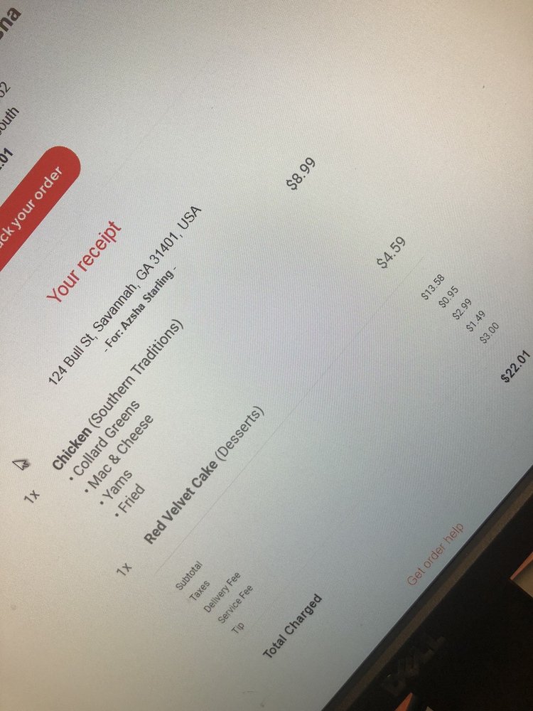 Includes fried chicken, collard greens, white rice, yams, rolls, banana pudding, and sweet tea